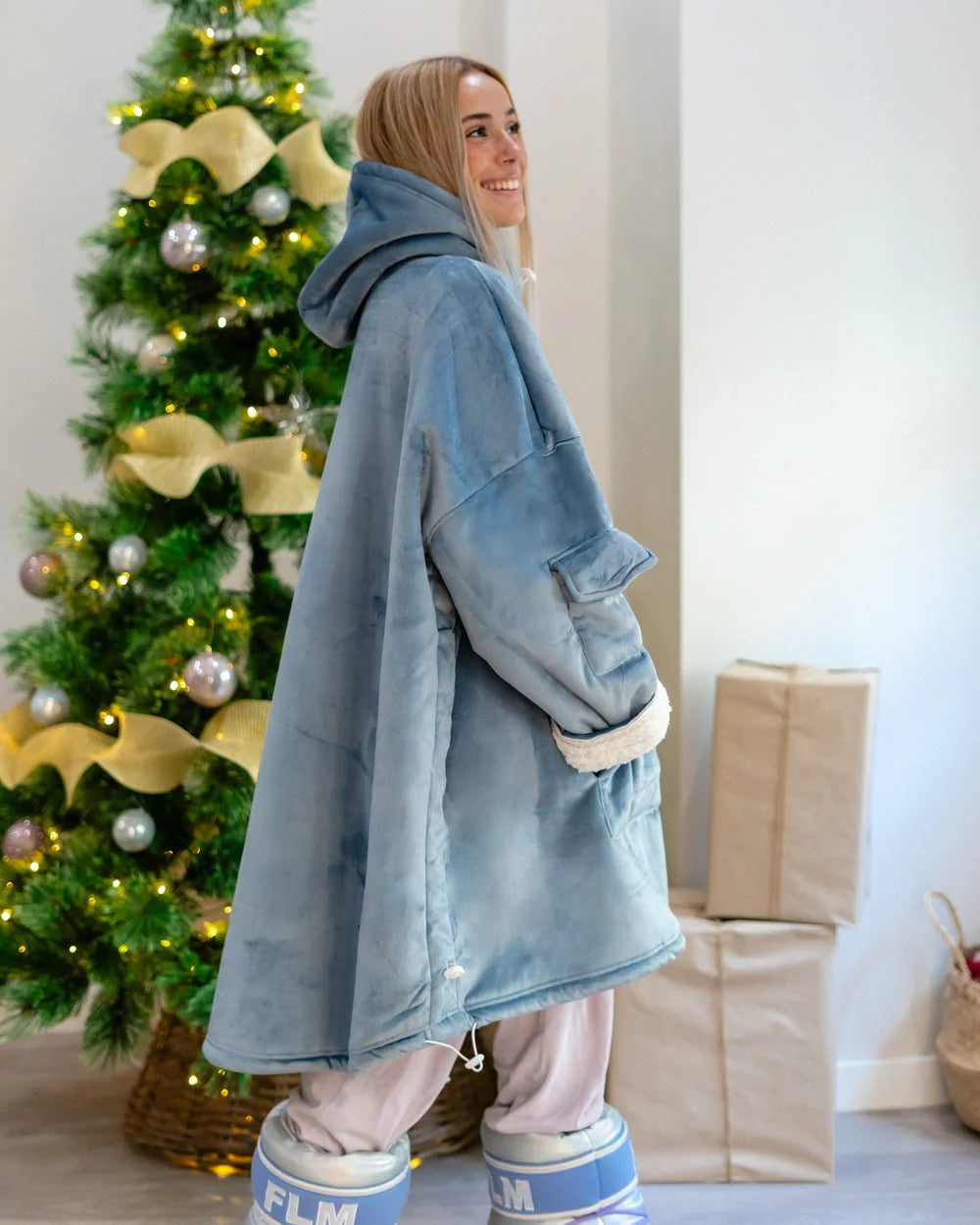 Šis minkštas pledas-džemperis idealiai tinka jaukumui namuose. Puikiai dera su šlepetėmis ir sukuria maksimalų komfortą šaltomis dienomis.